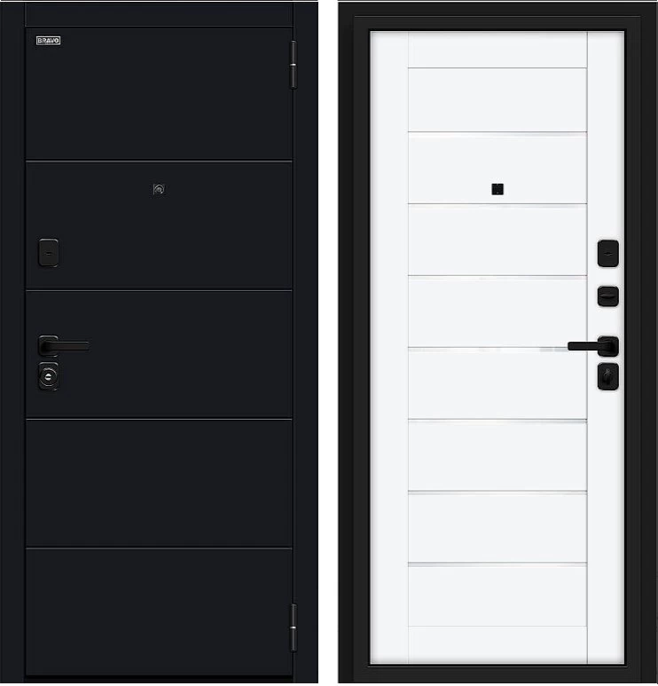 Надежная входная Дверь Браво Прайм/SBlack-Black Shell/White Silk премиум класса по цене 40 095 руб. Большая толщина стали защитит от проникновения в ваш дом, квартиру или коттедж. Используется очень качественная фурнитура: замки, цилиндры, ручки, защелки. Покрытие и отделка двери изготовлено под внимательным контролем производителя. Дверь имеет долгий срок службы и гарантию.