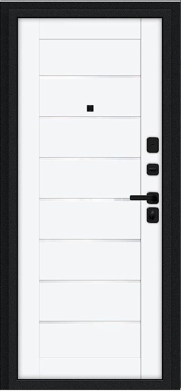 Надежная входная Дверь Браво Техно/SBlack Букле черное/White Silk премиум класса по цене 33 245 руб. Большая толщина стали защитит от проникновения в ваш дом, квартиру или коттедж. Используется очень качественная фурнитура: замки, цилиндры, ручки, защелки. Покрытие и отделка двери изготовлено под внимательным контролем производителя. Дверь имеет долгий срок службы и гарантию.