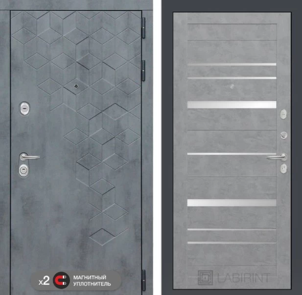 Дизайнерская входная Дверь Бетон класса Люкс с несколькими листами стали, звукоизоляцией и теплоизоляцией. Утепленный короб и полотно защитят от сквозняков и шумов. Модель не только надежная, комфортная, защищенная и высочайшего качества, но и очень красивая! Будет отлично сочетаться с интерьером дома, квартиры или офиса. Сейчас действует выгодное предложение по цене: 55 495 руб.